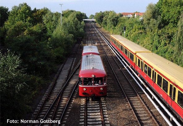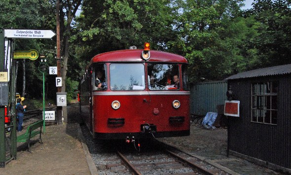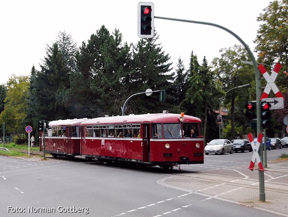 Fahrplanmäßig verließ der Triebwagenzug den Bahnhof Schönow MKB um 12 Uhr 5 Minuten und machte sich auf seinen weiteren Weg. Zunächst ging es wieder über das Streckengleis der Goerzbahn nach Lichterfelde West... von wo die Fahrt dann in Richtung Deutsches Technikmuseum Berlin fortgesetzt wurde.